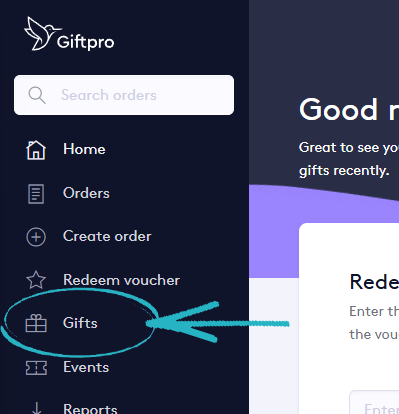 1. From the Dashboard, click Gifts on the left-hand menu: