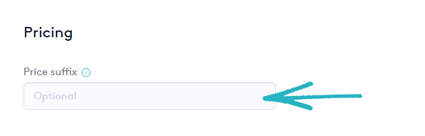 10. Now you need to add your Pricing. If applicable, complete the Price Suffix field. You can enter a short text label here that will be displayed next to the price when this product is displayed on a category page - e.g. ‘For two people’: