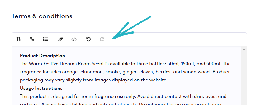 17. Copy and paste your Terms & conditions into the field provided. You’ll see a few formatting tools above the main field, so consider using them to make your text easy to read: