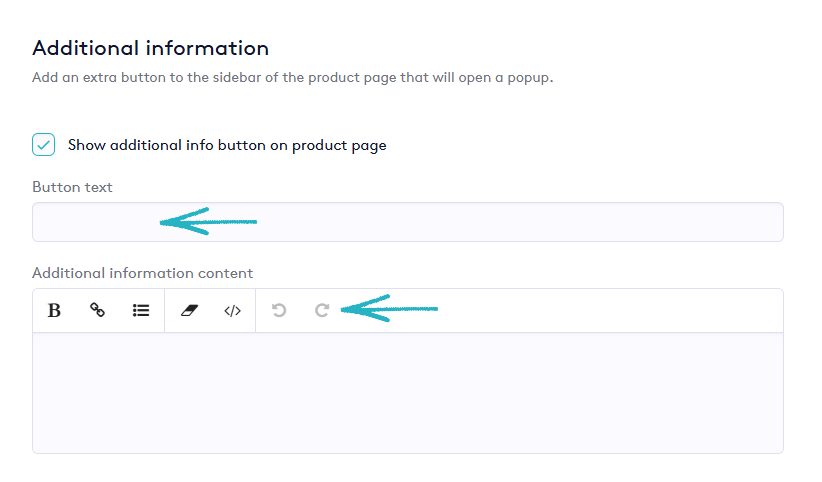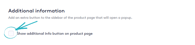 18. If you need to add any additional information to your product in the form of a pop-up, tick this box: