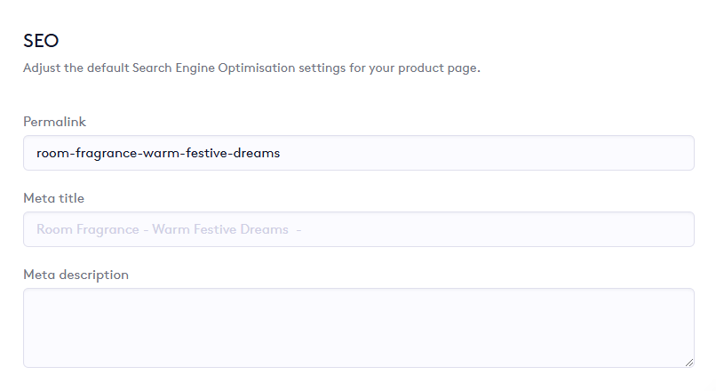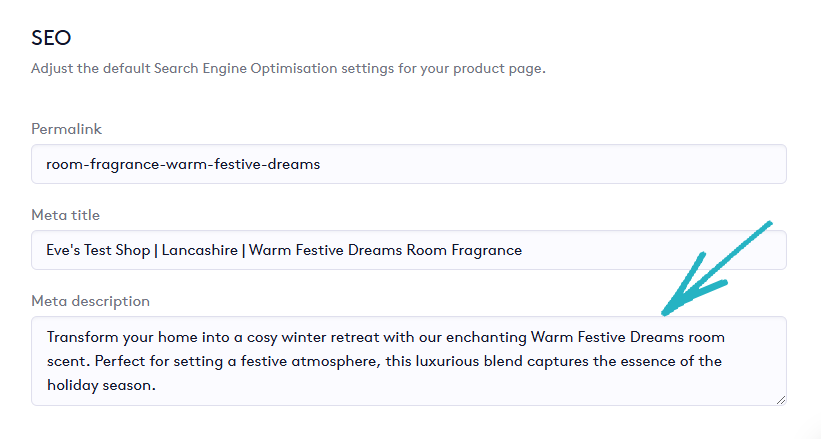 21. The permalink is the URL extension that appears in the browser. It’s also the link that sends people directly to the specific product page, e.g., ‘yourdomainname.giftpro.co.uk/champagne-afternoon-tea/’.