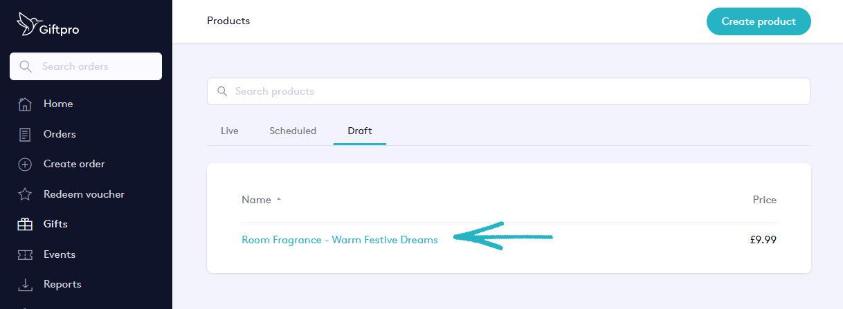 28. You’ll then be able to see your product listed on either the Live, Scheduled or Draft tab - depending on what status you gave your product when creating it: