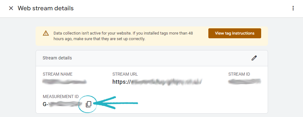 13. Click the Copy symbol next to the Measurement ID and paste this onto a Notepad (.txt) file, or if you’re using a Mac, use Text Editor. You will need this later on: