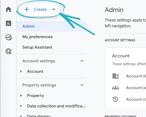 1. From the dashboard of your GA4 account, click the cog symbol in the bottom left-hand corner: