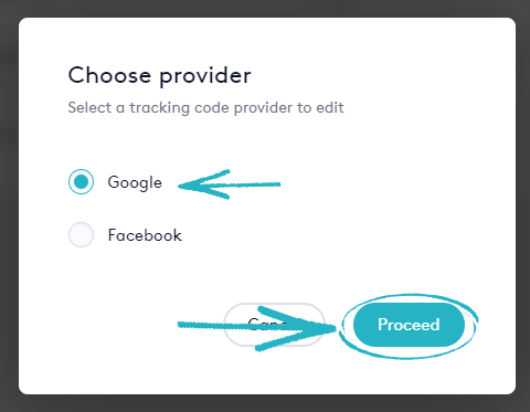 19. In the modal that appears, tick the box for Google and then click the Proceed button:
