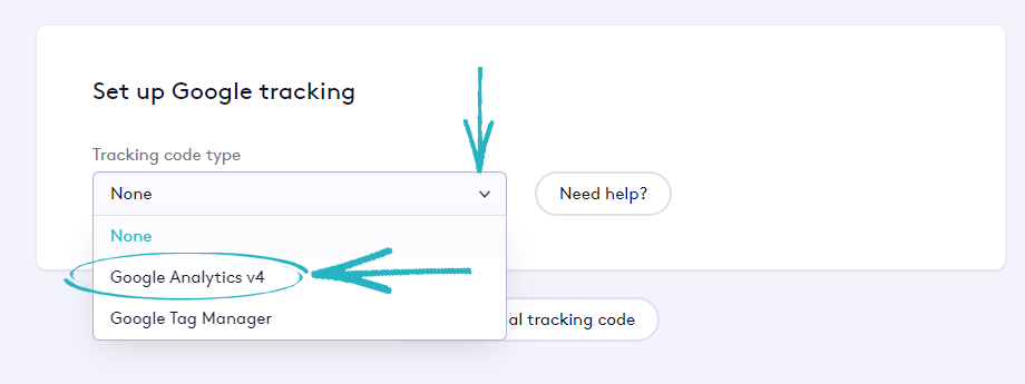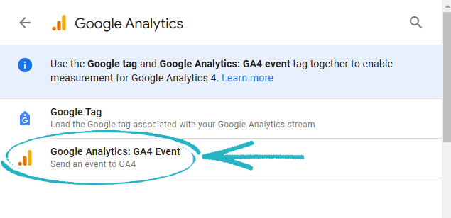 20. Click the down arrow to access the drop-down options, and select Google Analytics v4: