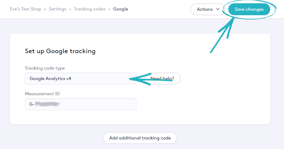 21. You’ll then see a Measurement ID field appear. Paste in your Measurement ID, and then click Save Changes in the top right-hand corner: