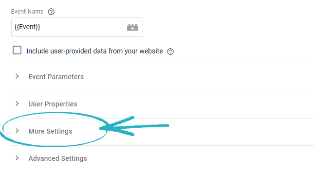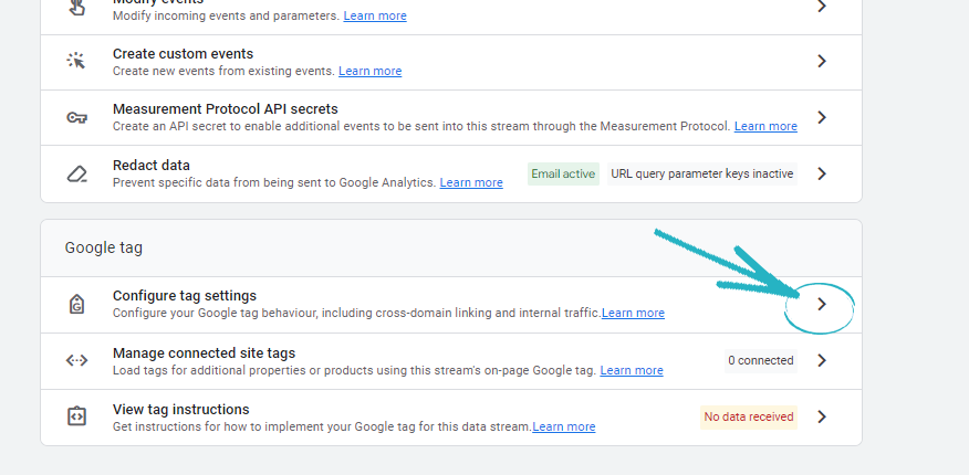 23. This will open the side modal again. Scroll down and click the arrow symbol to the far right of Configure Tag Settings: