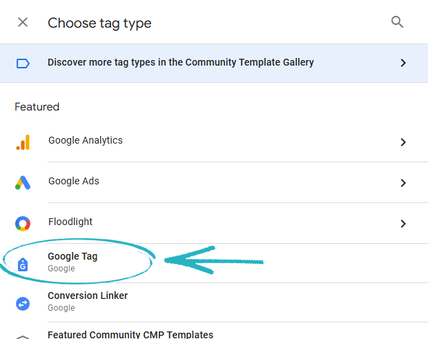 39. In the menu that appears on the right-hand side, click Google Tag: