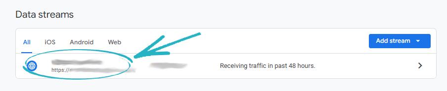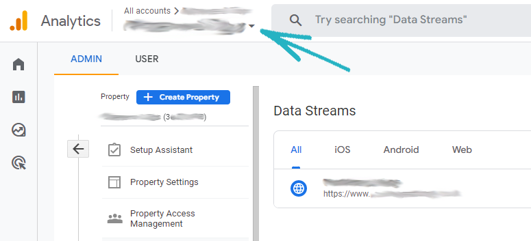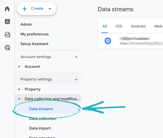 41. Return to the browser tab displaying your Google Analytics account, and click Data Streams in the left-hand side menu: