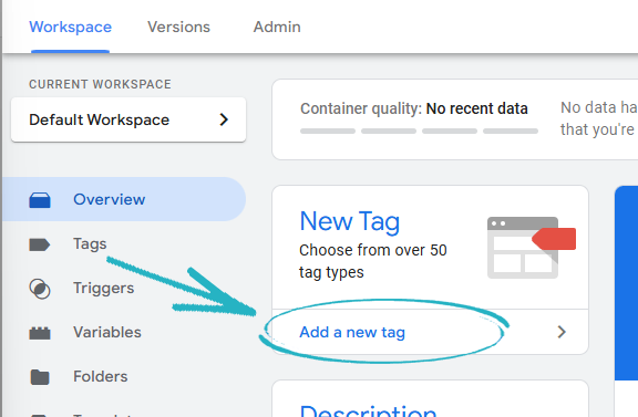 48. You will then be redirected to the Google Tag Manager Dashboard. Again, you need to click Add A New Tag: