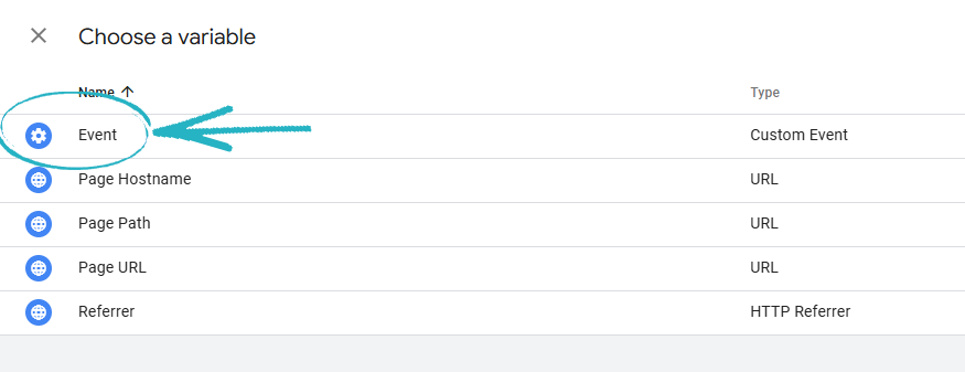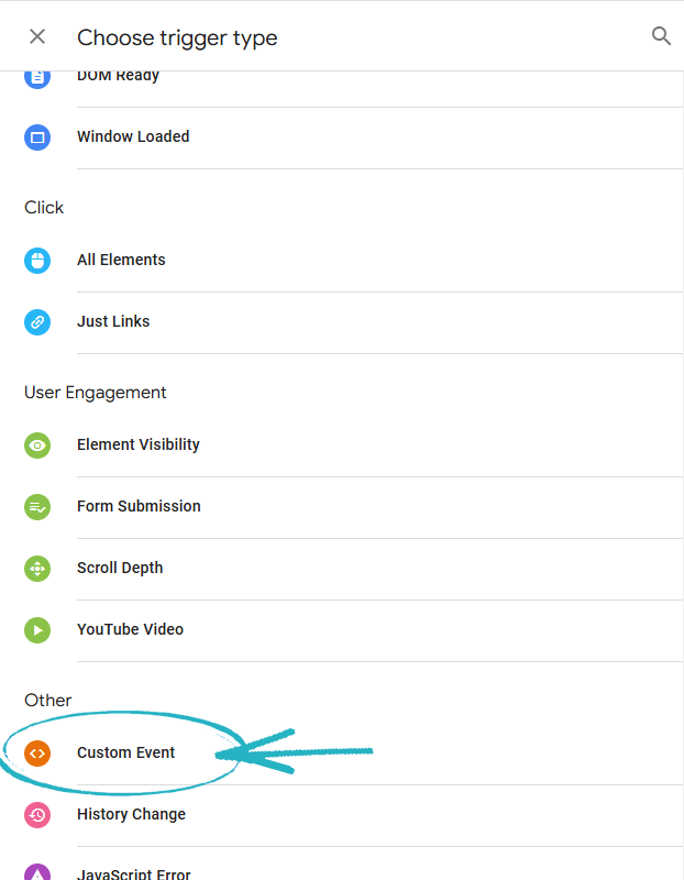62. Scroll down the right-hand side menu and click Custom Event: