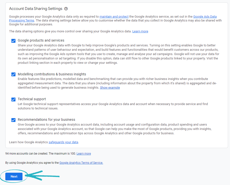 5. Scroll further down the page and click the blue Next button on the left-hand side: