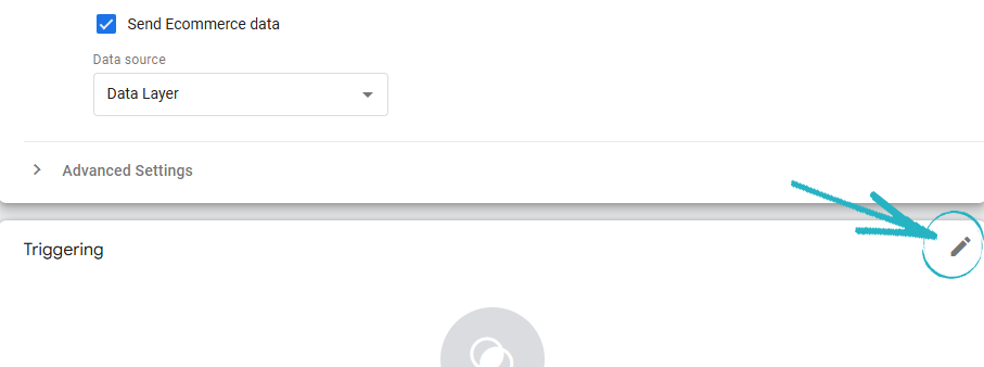 59. Scroll further down and click the Edit symbol in the top right-hand corner of the Triggering element:
