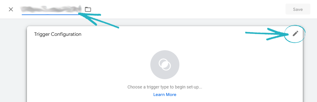 61. Give this trigger a name in the field in the top left-hand corner, and then click the edit symbol in the Trigger Configuration element:
