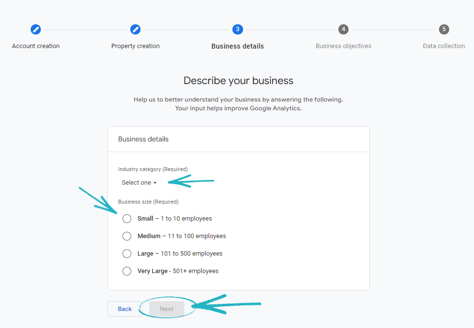 7. Choose your Industry Category using the drop-down, then select the relevant box on this page and click the Next button on the bottom left-hand side: