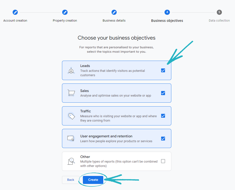 8. On this page, tick the relevant boxes and click the Create button at the bottom of the page: