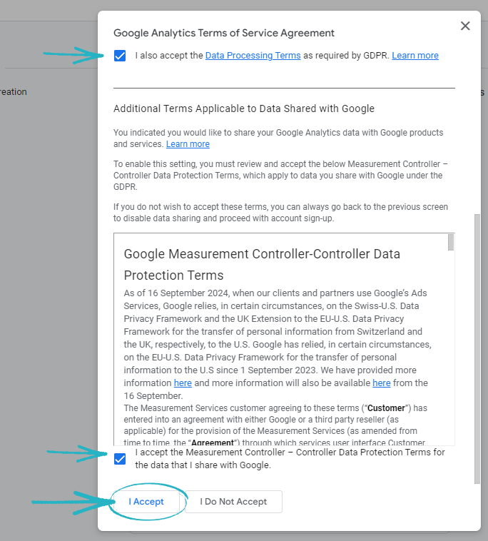 9. You’ll then see this modal appear. You’ll need to tick the relevant boxes before clicking the I Accept button on the bottom left-hand corner: